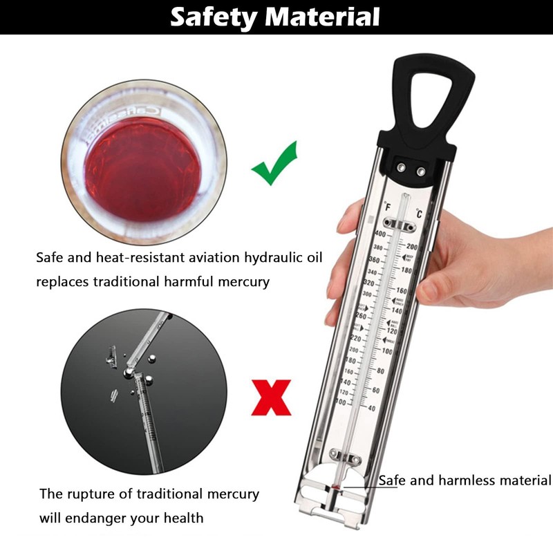 - 【Safety and Stability】The food grade stainless-steel casing provides strength and corrosion resistance, insulated handled does not retain heat, providing durability and safety; The plastic protective sheath of glass thermometer can protect the thermometer from breaking, also easy to store.