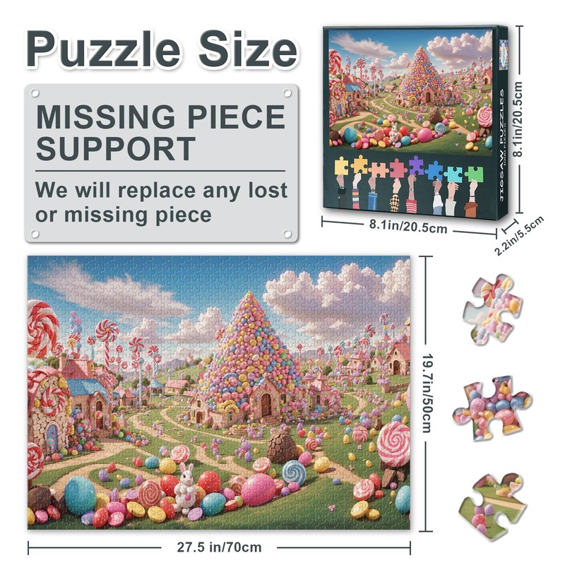 Candy Town Puzzles for Adults 1000 Pieces Lollipop Trees Jigsaw Puzzles 1000 Pieces Impossible Puzzle for Adults, Sweet Candy Land Puzzle, 19.5 x 27.5 Inch