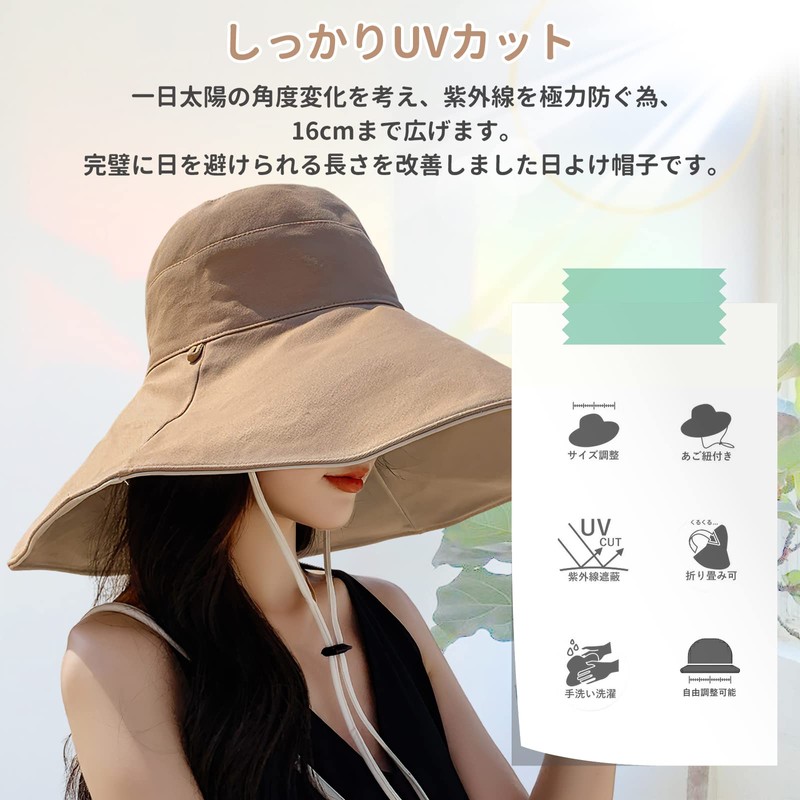- UV Protection: It has excellent breathability and UV protection, so it can protect your face and neck from UV rays. A hat is essential in the summer. The brim is long enough to keep out UV rays and protect your face all over and make your face look cuter. The wide brim hat makes your face look smaller