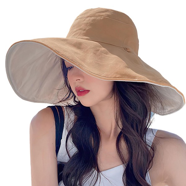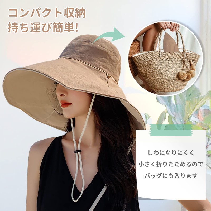 Candybay Women's UV Protection Hat, Wide Brim Hat, UPF 50+, UV Protection, Small Face Effect, Foldable, Can Be Used on Both Sides, Free-Shaped, Includes Chin Strap, No Wind Blowing, Convenient to