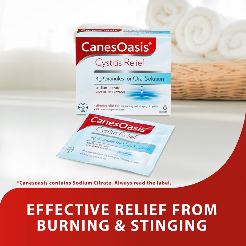 CanesOasis Cystitis Relief | Granules for Oral Solution to Relieve & Treat the Burning & Stinging of Cystitis | 48hr Complete Course | Cranberry Flavour | 6 Count (Pack of 1)