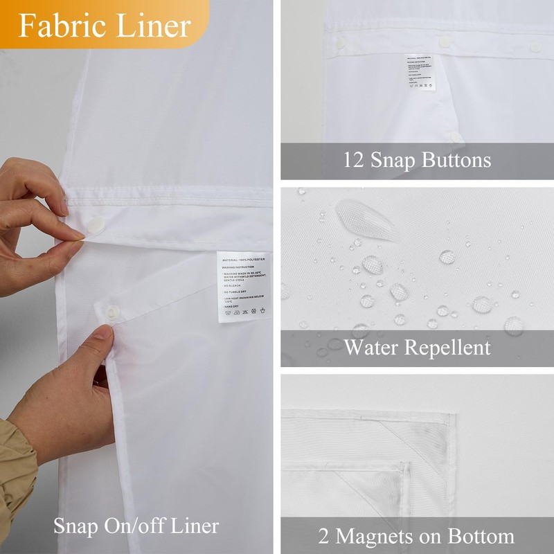 - 【Easy to Installation】This shower curtain designed with no hook for easy installation that let you hang them easily. No need to buy hooks and no need to remove the rod.
