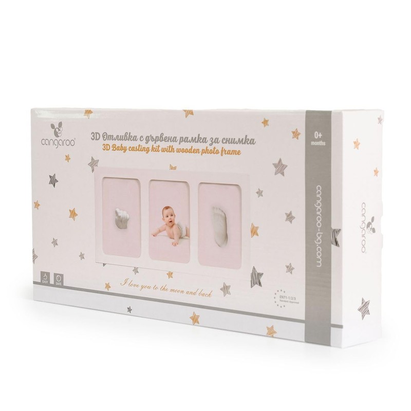 Special features: Cangaroo baby plaster cast 3D hand and foot print set, wooden photo frame: