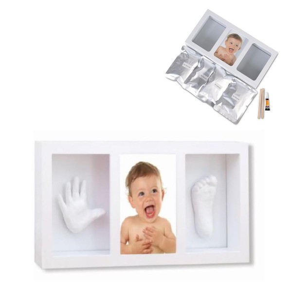 Cangaroo Baby Plaster Cast 3D Hand and Footprint Set, Wooden Photo Frame, Colours: White