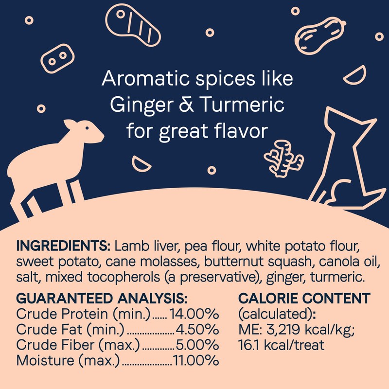 - Contains 1 - 11 Oz. Bag of Pure Grain-Free Biscuits with Lamb Liver and Butternut Squash