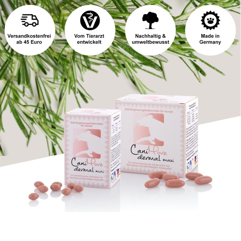 CaniMove Dermal Maxi Twin Pack (200 Capsules) Also for Skin Diseases (Dermatitis, Dermatosis, Cortisone Donations), with PUFA, Lycopene, Biotin and Zinc.