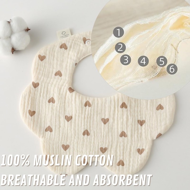 - [Ultra Absorbent] Made with 6 layers of soft, thick cotton for ultimate drool protection. Keeps the baby dry and comfortable all day, especially during teething.