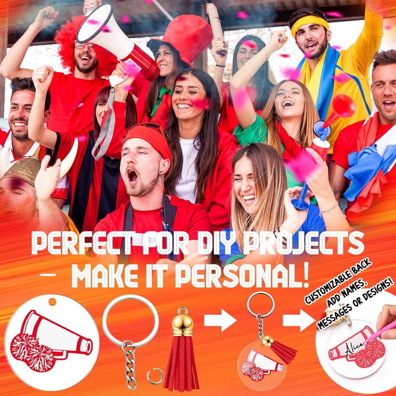 • DIY Custom Cheer Keychains: each acrylic cheerleading keychain features a vibrant megaphone print on one side and a blank back for DIY customization; Use markers or vinyl stickers to add names, numbers, or team mottos, making each keychain a meaningful keepsake