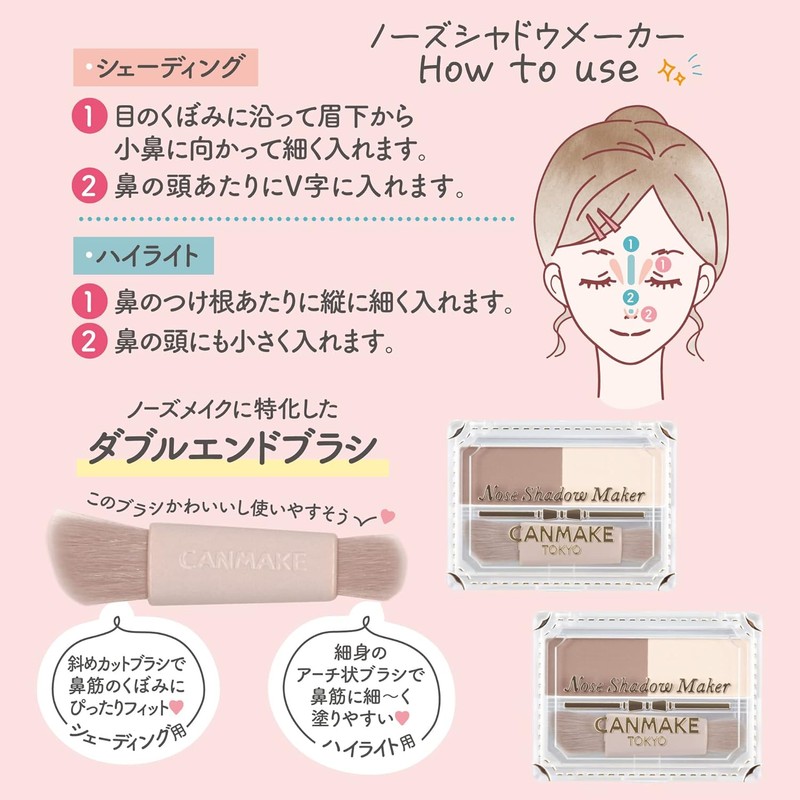 Canmake Nose Shadow Maker 02 Grayish Pink 2.7g Nose Shading Highlight 01 Greige yellow