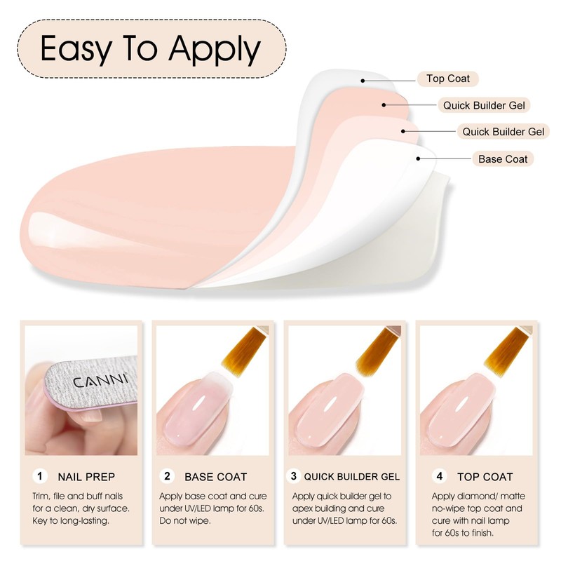 CANNI Quick Builder Gel for Nails – 9ML Nude Soak-Off Nail Strengthening Gel for Apex Building DIY UV LED Manicure