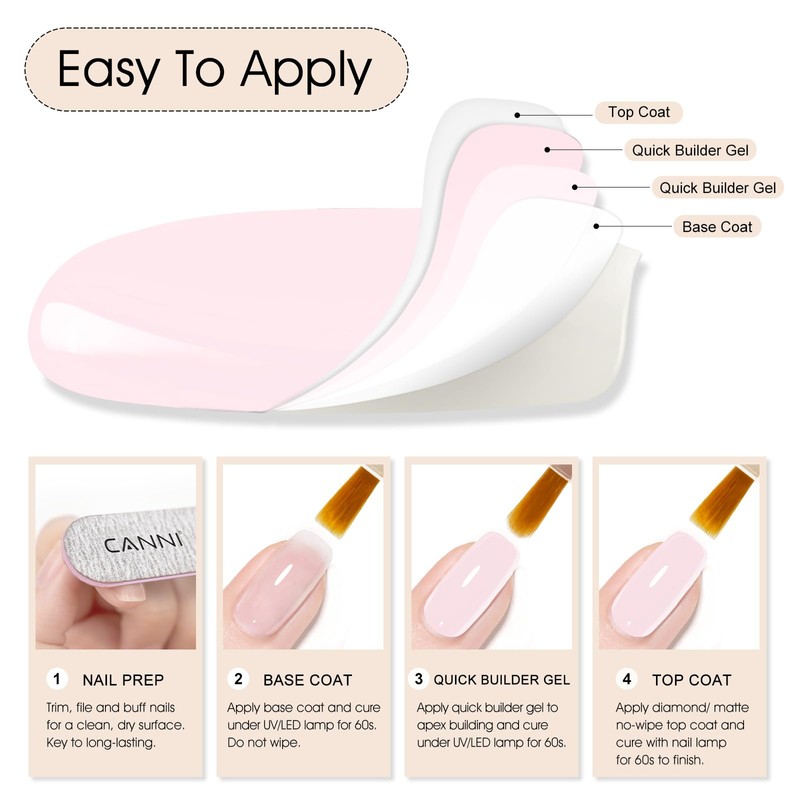 CANNI Quick Builder Gel for Nails – 9ML Pink Soak-Off Nail Strengthening Gel for Apex Building DIY UV LED Manicure