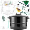 - [High Efficiency & Versatility]Elevate your canning experience with our canning supplies starter kit,which includes everything you need to create delicious homemade preserves,jams,jellies,pickles,and more. The 21.5-quart water-bath canning pot is designed to be durable,heat-resistant and heats evenly.It also features a collapsible stainless steel jar rack that holds up to 7 one-quart jars, 9 pint jars, or 12 half-pint jars to ensure stability during the canning process.