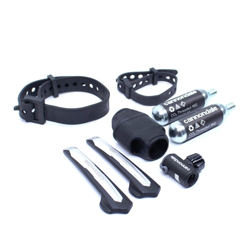 - Sleeve holds CO2 cartridges and 2 tire levers in one ■ Inflator with twist control to freely use or use CO2 cartridges