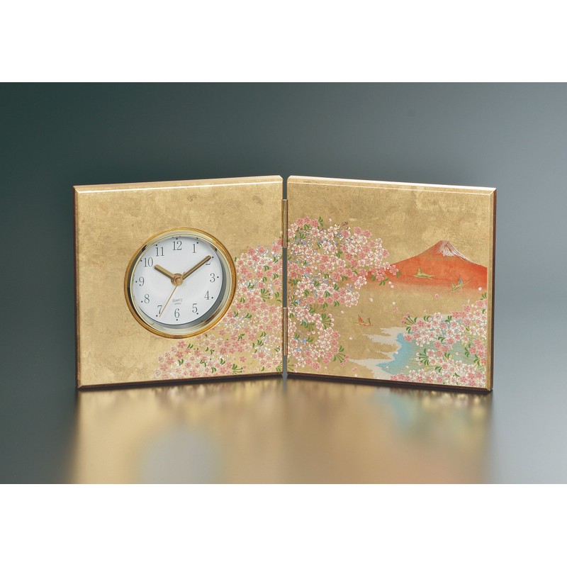Canoe Hana Fuji Table Clock, Wall Clock, 15.6 x 1.6 x 7.5 inches (39.5 x 4 x 19 cm), Kaga Foil Folding Screen Clock