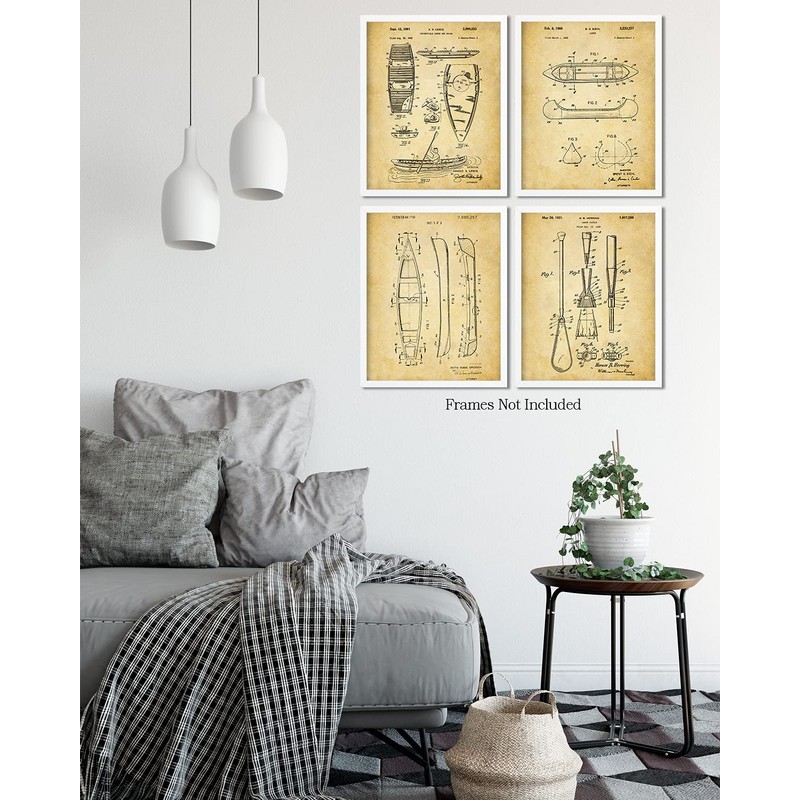 Canoeing and Kayaking Patent Wall Art Prints - set of 4 (8x10) Unframed - wall art decor for canoe and kayak fans