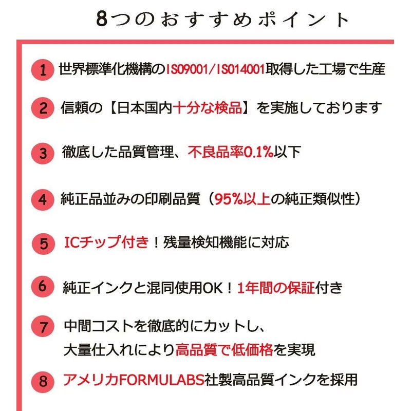 Our compatible inks are produced in a factory that has acquired ISO9001 quality management system and ISO 14001 environmental management system. High quality and reliable ink cartridge that is carefully manufactured one by one under strict quality control.