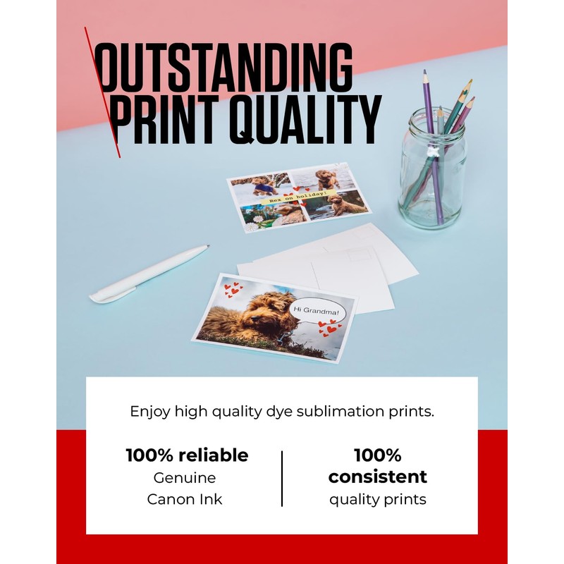 - BRILLANTE FARBEN – Fotopapier mit spezieller Farbtinte für gestochen scharfe Bilder und lebendige Farben. Perfekte Ergebnisse für Ihre wertvollsten Fotos und Erinnerungen mit dem Canon Selphy Fotodrucker.
