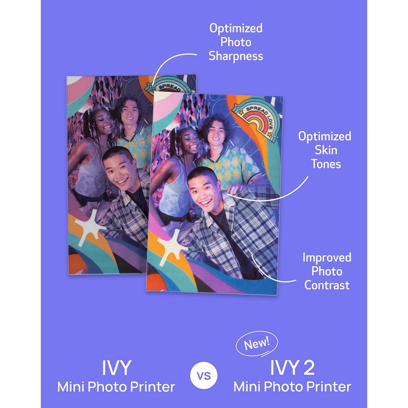 - PRINT QUALITY IMPROVED in the IVY 2 Mini Photo Printer(optimized skin tone colors, improved photo contrast, optimized photo sharpness)