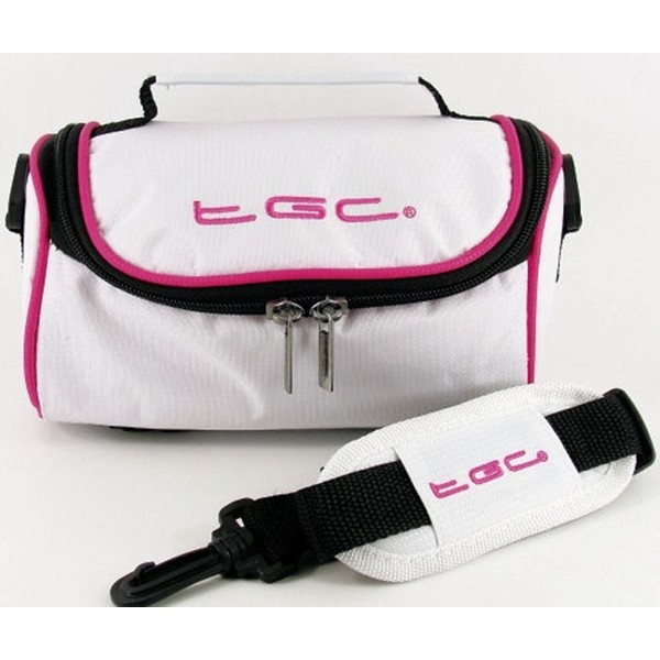Canon PowerShot SX720 HS Camera Case Bag by TGC ® with shoulder strap and Carry Handle (Cool White With Hot Pink Trims)