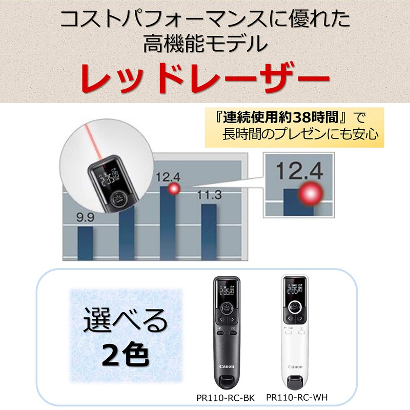 Canon PR110-RC-BK Red Laser Pointer (Anti-Microbial Specifications) Black PowerPoint, Keynote, Preview, PDF Compatible