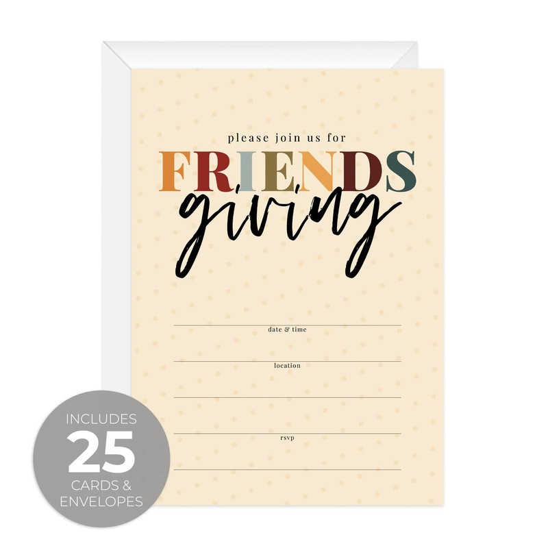 - Includes: Pack of 25 chic fill-in Friendsgiving party invitations.