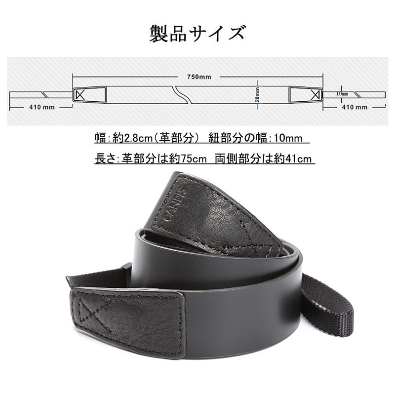 CANPIS CP001 Neck Strap, Genuine Leather, Adjustable, for SLR and Mirrorless SLR Cameras Width 1.1 inches (28 mm) (Leather Part), Black