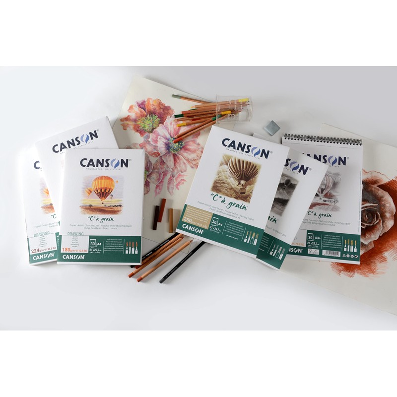 'Canson 400060604 °C A Grain Lightly Grained Drawing Paper 180 g/m², A4 +, 30 Sheets per pad – 210 x 322 – White Spiral on Short Edge