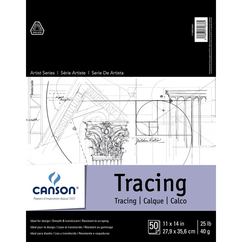 Canson Base de papel de calco para tinta, lápiz y marcadores, plegable, 25 libras, 11 x 14 pulgadas, 50 hojas