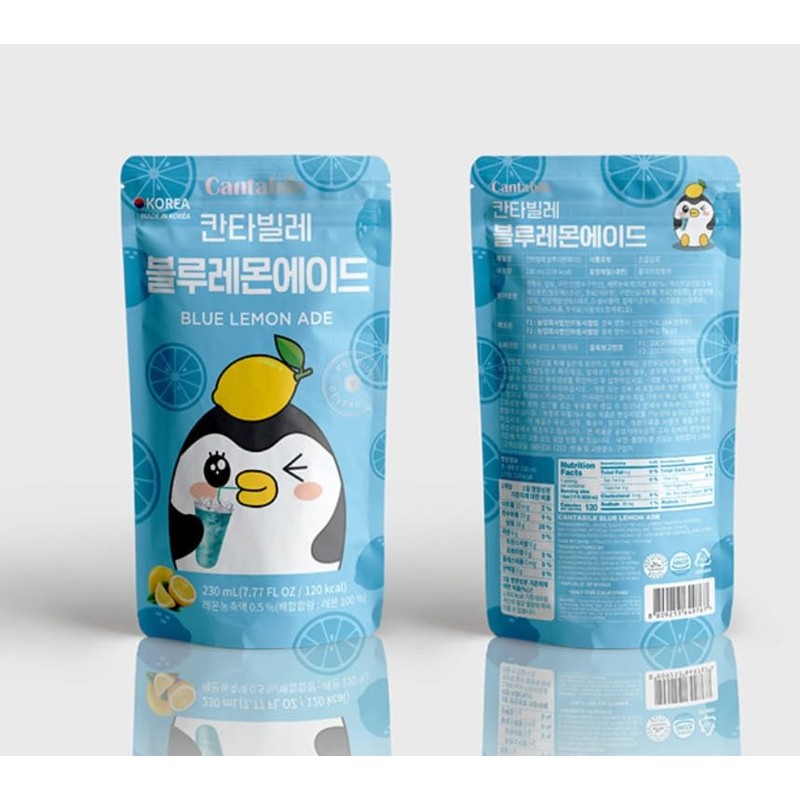 Cantabile Korean Convenience Store Pouch Drink Ready-to-Drink Refreshing Beverage Imported from Korea (1 Pack, Blue Lemon Ade)