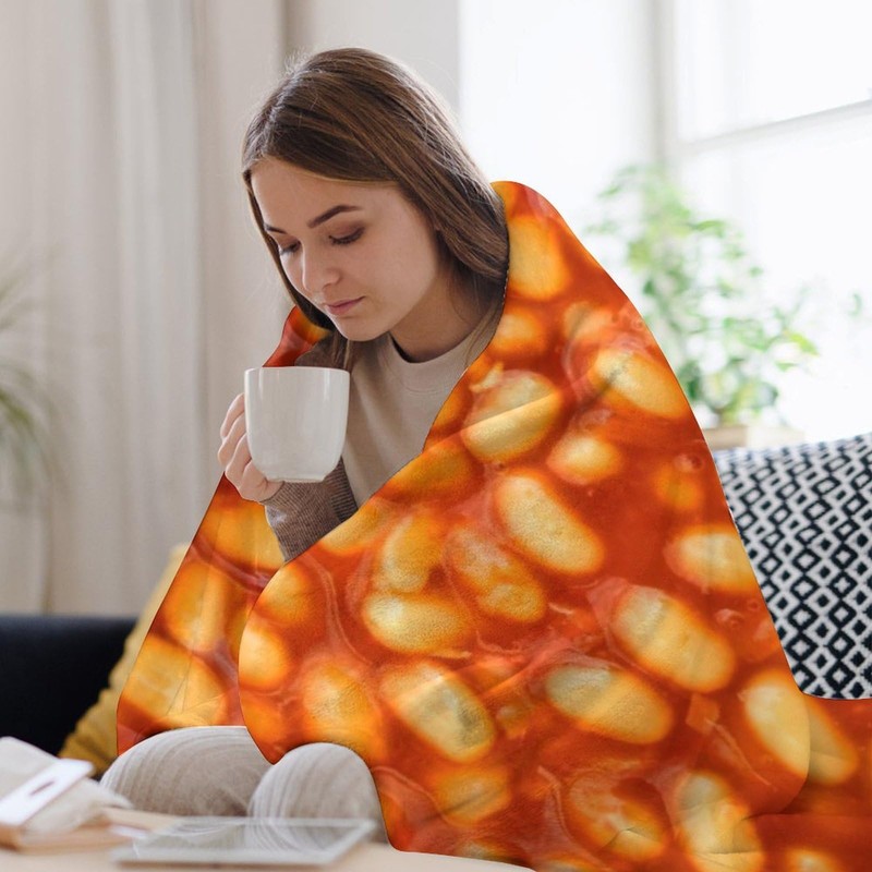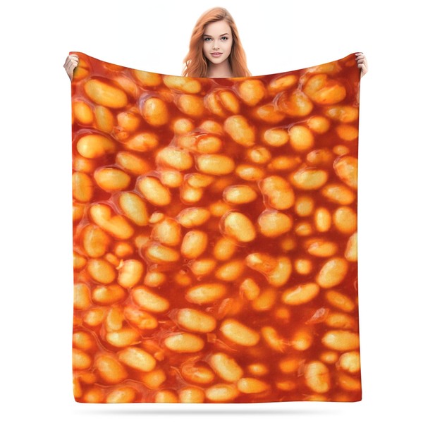 Cantidelli 3D Funny Realistic Food Baked Beans Flannel Fleece Throw Blankets 50"X40" Soft Cozy Fluffy Winter Fall Blanket Cozy Soft Fuzzy Plush Home Decor for Couch Bed Sofa Living Room Bedroom