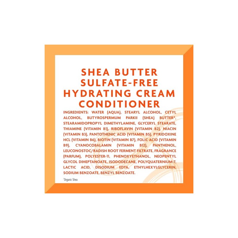 Cantu Shea Butter for Natural Hair Sulfate-Free Hydrating Cream Conditioner . fl oz delivers an added layer of moisture after shampooing. Formulated with an award-winning blend of pure shea butter and essential oils, the Hydrating Cream Conditioner helps protect curls against breakage and split ends for stronger, healthier hair. Enjoy ultimate hydration and complete conditioning without the use of harsh ingredients like mineral oil, drying alcohol, sulfates, parabens, silicones, phthalates, paraffin, or propylene. For best results, pair with the Sulfate-Free Cleansing Cream Shampoo. Since the beginning, youve pushed us to advance skin and hair science to honor your locs, your curls, your waves, your braids, your natural. At Cantu, we support your journey with care and we celebrate all the styles you rock!