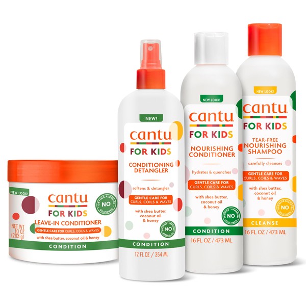 Cantu Care for Kids Haircare Regimen Set with Large Size Shampoo + Conditioner + Detangler + Leave-In Conditioner (Pack of 4)