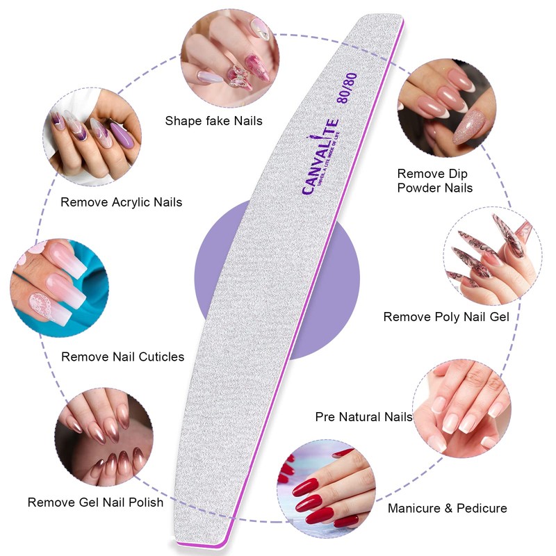 Canvalite 10pcs 80/80 Grit Nail Files for Acrylic Nails Emery Board Nail Styling Tools for Home and Salon Use