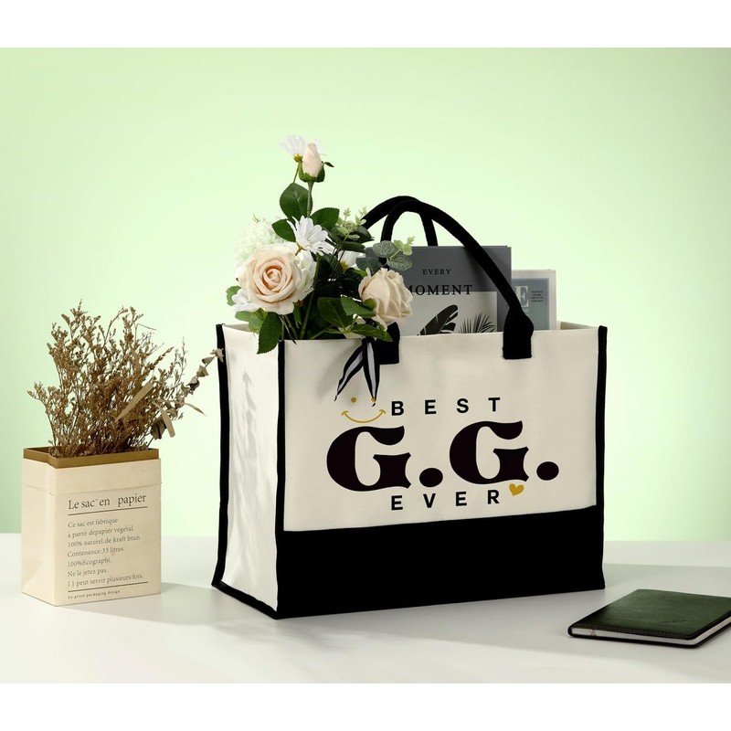 Canvas Bag for G.G., Best G.G. Ever, Cotton Canvas Tote Bag, Grandma Gift for Mother's Day Christmas Thanksgiving, Womens Weekend Bag, Reusable Grocery Bags for Picnic Shopping Holiday Camping