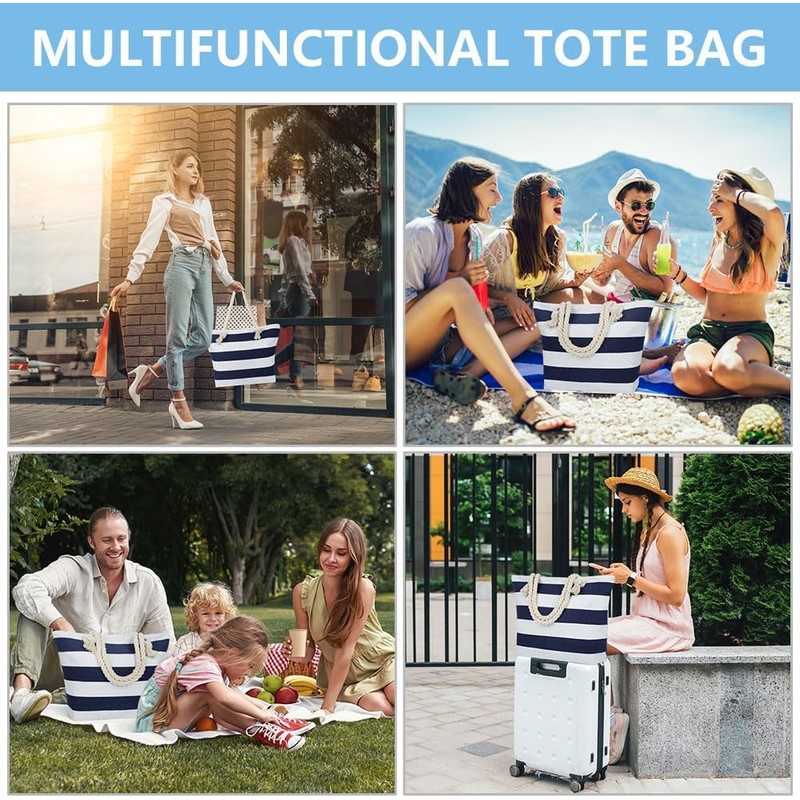 - 【LARGE STORAGE CAPACITY】- Measuring 17.4x13.4x5.2 inches, our beach tote bag is extra-large and can easily store all your travel and beach necessities, including beach towels, extra clothes, shoes, sunglasses, snacks, and more.