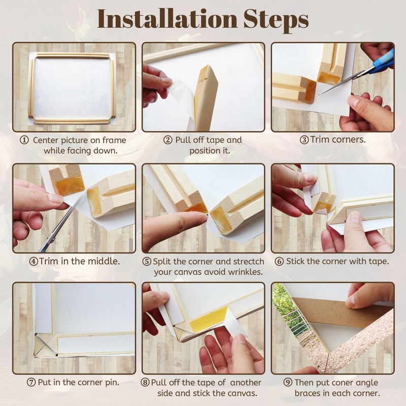 - SUPER-EASY TO ASSEMBLE CANVAS FRAME KIT! All hardware Accessories are included.All you need is a pair of scissors. That's it. No need for pliers, glue or any other tools. Our canvas stretcher frame is extremely easy to assembling together, thanks to the well-made bars that fit together perfectly at the corners.