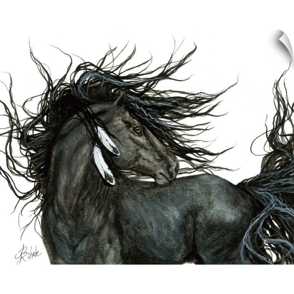Wall decal art print entitled, "Friesian - Majestic Horses." Majestic Series of Native American inspired horse paintings.