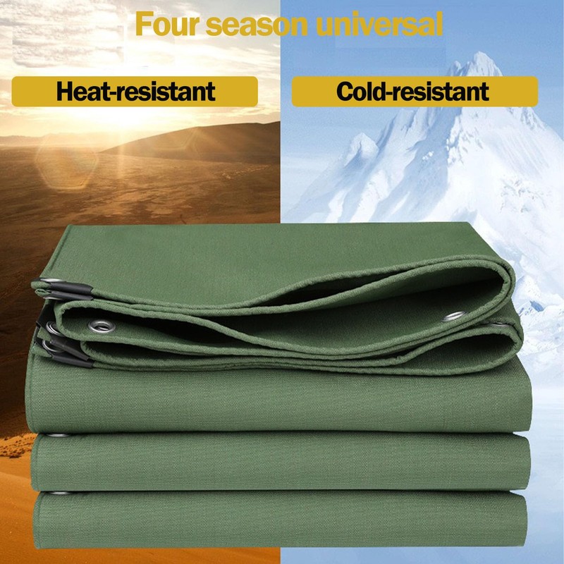 - Seasonal Versatility - This all-weather tarp is designed to withstand various weather conditions, providing protection against water, dirt, and sun damage without deteriorating.Our heavy canvas tarps can protect your items whatever you want from UV rays,wind and snow year-around.The heavy duty canvas tarps provides protection against heavy rain and UV rays.Perfect for Agriculture, Machinery, Industrial, Commercial, Construction, Home, Outdoor Applications.
