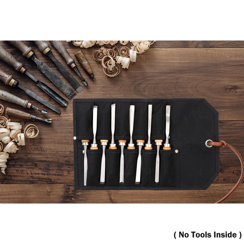 Canvas Tool Pouch, Heavy Duty 16oz Waxed Canvas Chisel Organizer with Tie Rope, Multi-Purpose Tool Roll Up Bag with 10 Pockets | Black