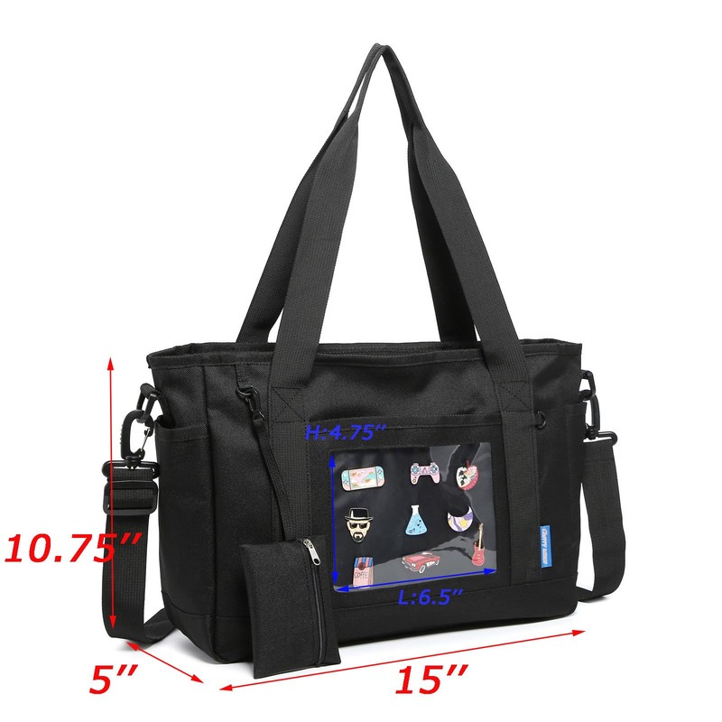 Canvas Tote Ita Bag Luggage Bag Shoulder Bag Kawaii Purses and Handbags with Pin Display for Mens Womens