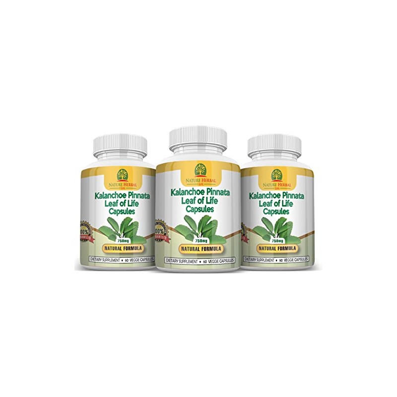 Nature Herbal Life Kalanchoe Pinnata-Leaf of Life-Cathedral Bells 750mg Vegetarian Capsulas. (3 Bottles) 90-Days Supply. de Kalanchoe Pinnata., 60 Count (Pack of 3), 180.0 Count