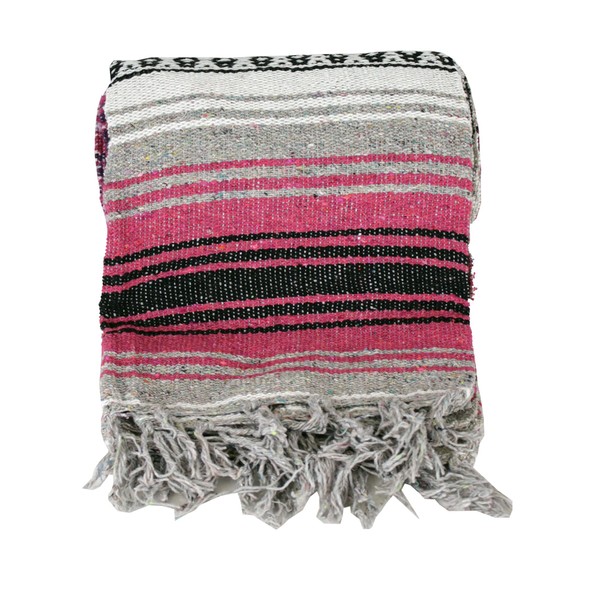 This high quality falsa blanket is perfect for yoga or just curling up on the sofa on a winter night. Made of soft woven acrylic treated cotton. It is machine washable and measures 72" x 48". Makes a great gift! PLEASE NOTE THAT DUE TO DYE LOTS AND AVAILABLE THREAD, YOUR BLANKET MAY HAVE A COLOR VARIATION FROM THE BLANKET THAT IS PICTURED. WE MAKE EVERY EFFORT TO INSURE THAT THE COLOR IS CLOSE, BUT IT MAY VARY A LITTLE. EXAMPLE: YOUR BLANKET MIGHT BE A LIGHTER SHADE OF PINK OR A DARK SHADE OF BLUE. EITHER WAY, ALL OF OUR BLANKETS ARE HIGH QUALITY AND A GREAT PRICE AND WE HOPE YOU ENJOY THEM!