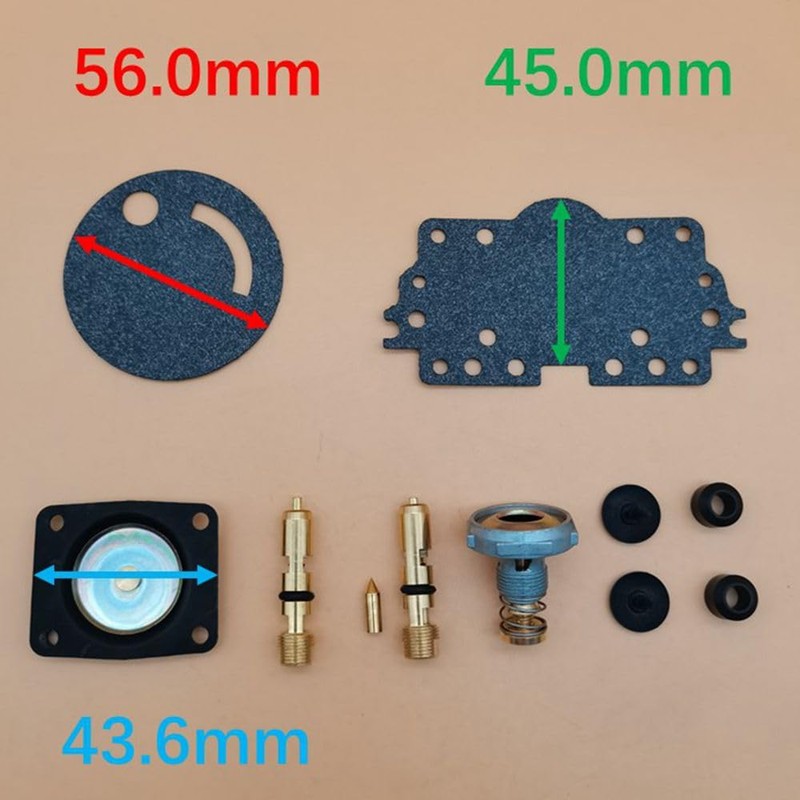 Package Includes:High-flow .110" needle and seats ,6.5 Power Valve,30cc accelerator pump diaphragm,Brass accelerator pump check valve,Accelerator pump check valve diaphragm,Non-stick bowl and metering gaskets,Non-stick Open Style Base Gasket,Transfer Tube Seals (O-Ring & Sleeve Style Included)Choke Gasket