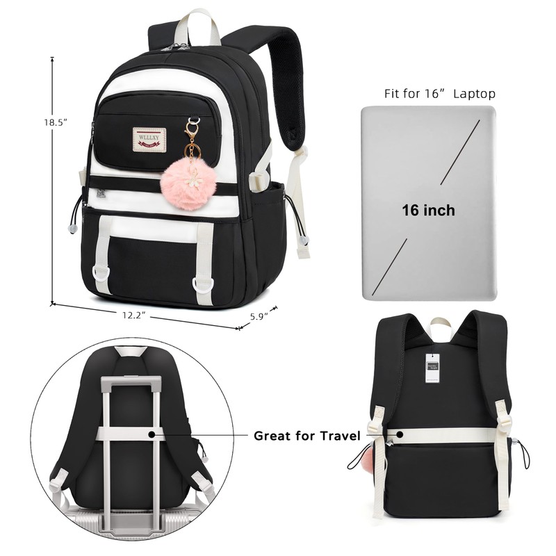 - 【Large Size 】The size of computer backpacks is 13.8"x7.5"x17.8", Weight:1.65 LB. The laptops bag with padded compartment sleeve fit for 13.3,15.6inch tablet. This university book bag also along with fluffy ball key pendan makes the bags more fashionable and unique