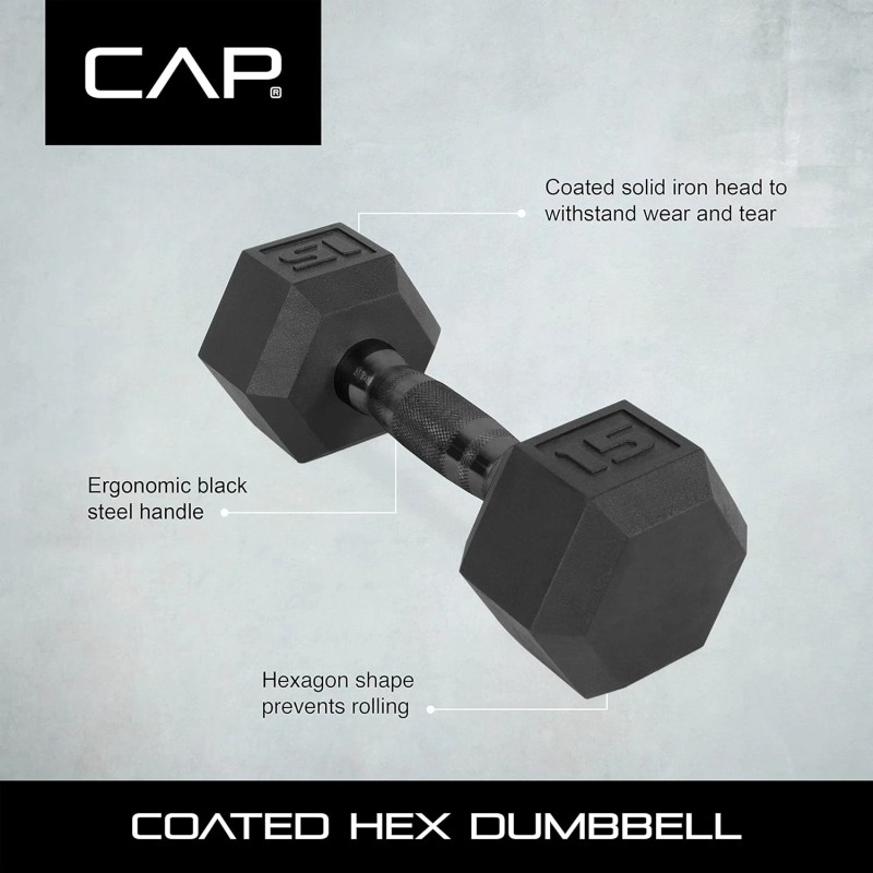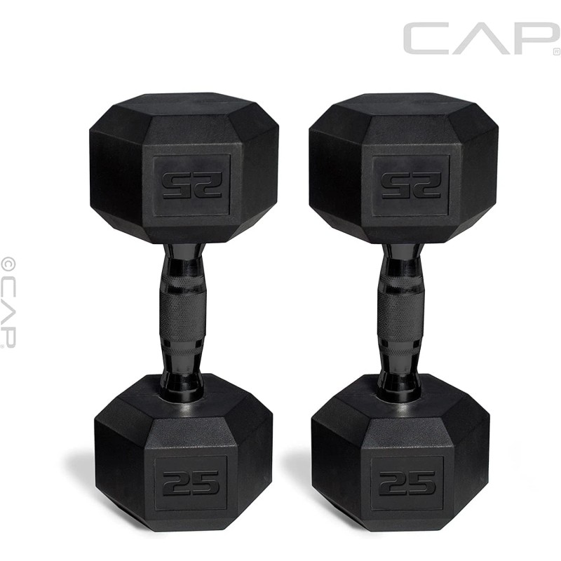 - FEATURES – Includes 25LB pair of coated dumbbells with Black handles; Hex-shaped ends prevent rolling; Medium-depth knurling on the handle provides essential grip and security during use; Comfort coated handle adds a stylish element to your home gym; Dumbbell end coating is extremely durable