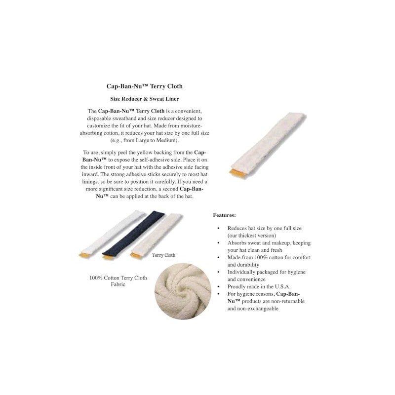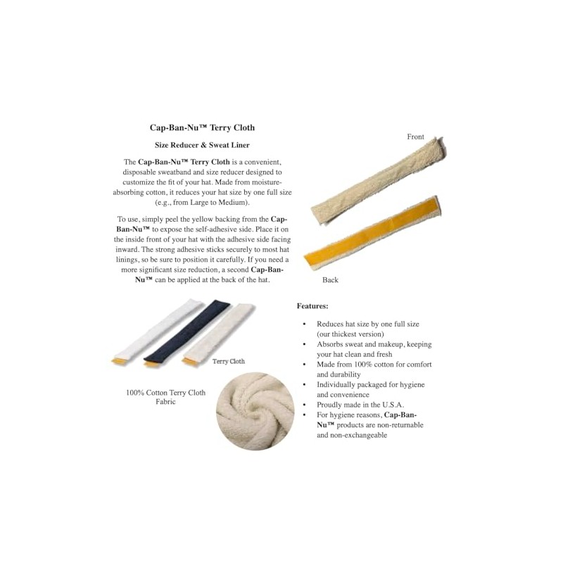 Cap-Ban-Nu Cream Terry Cloth Disposable Sweatband & Size Reducer for Hats (24)