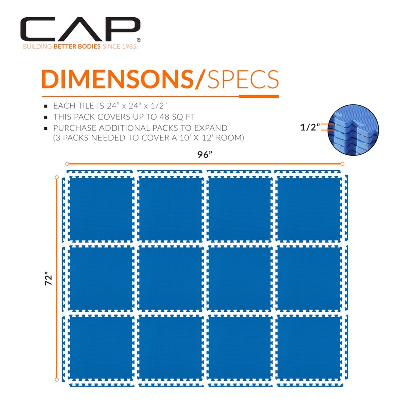 CAP Barbell 1/2 Interlocking EVA Foam Exercise Puzzle Mats - 2 Pack | 24" x 24" x 1/2" | T Pattern - Blue