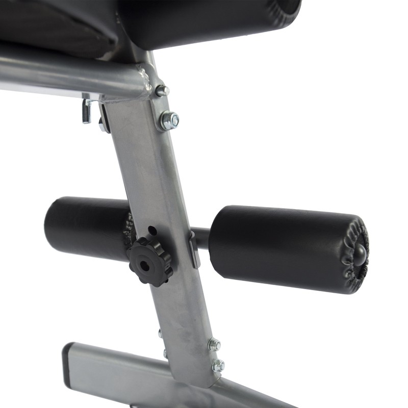 - Upright, flat, incline, and decline settings; Dumbbell holder offers easy access to weights