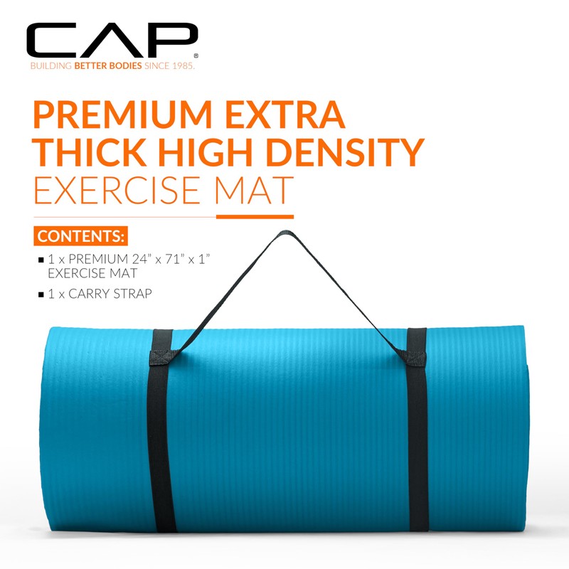 CAP High Density Exercise Mat with strap, 74"x24"x1" - Teal