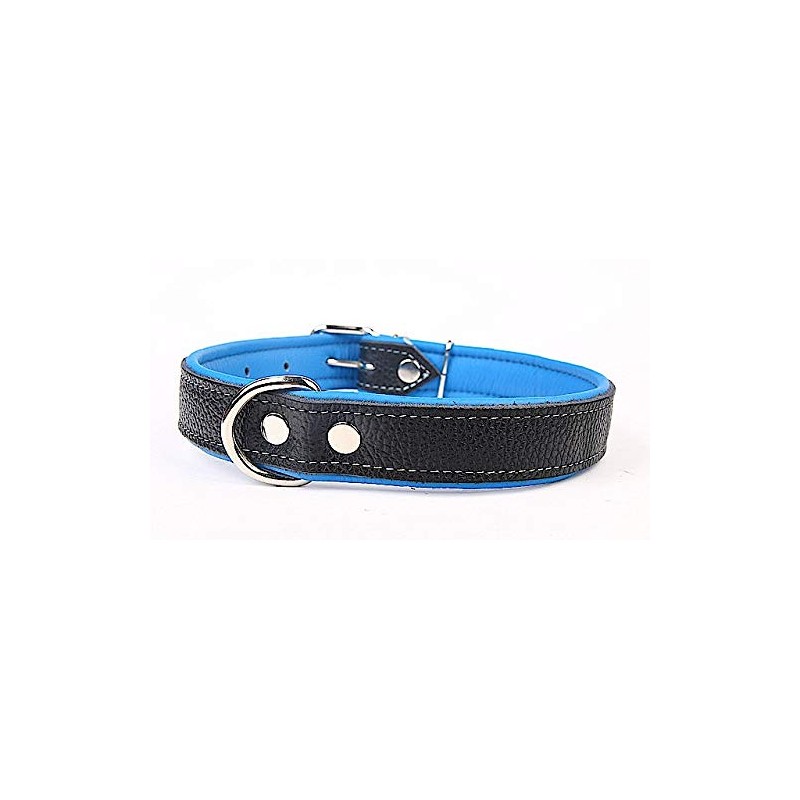 Capadi K0713 Dog Collar Lined with Napa Leather Strong Real Leather Dog Collar, Blue, Width 30 mm, Length 52 cm